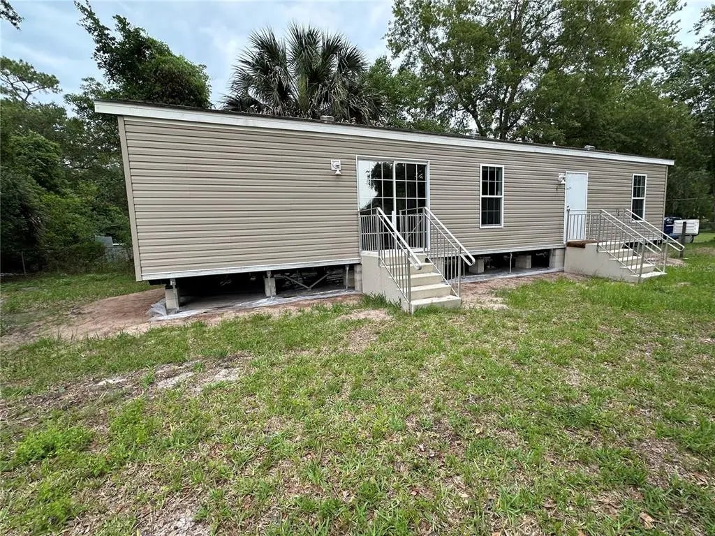 What a perfect spot for a quiet retreat in a golf cart friendly area. This 2019 built home has 2 bedrooms, 1 and a half bathrooms, and it includes kitchen appliances and washer and dryer. You can purchase this property with cash or VA financing. This property has access to the community boat ramp to the St. John's River for a yearly fee of $40. This property is not in a park, you own the land with no HOA or deed restrictions. Call today to take a look at this cute home!!