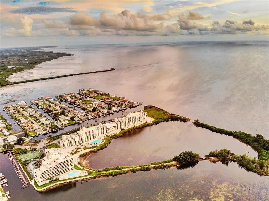 RARE OPPORTUNITY TO PURCHASE an Upgraded and Updated end unit. This end unit features gated entry for added privacy and extra living and dining room windows with glowing bright light that expands the feel of this meticulously crafted condo. Recent remodels include gorgeous Chef's domain pristine white self close cabinetry with upper glass accent doors, tiled backsplash, granite countertops , stainless appliances, brilliant can lighting and extra pantry closet, plus master suite features additional custom closet and 8ft slider and both ensuite baths boasts new granite top vanities with sparkling crystal styled lighting and custom tiled step in showers with built in corner glass shelves & glass doors. The interior flows beautifully with an open and airy floor plan with water views from all the rooms. Additional condo amenities are easy care coordinating luxury vinyl plank flooring, newer muli-panel interior doors, and washer & dryer. The covered lania offers water views and easy access to the huge community promenade for walking, sunbathing, and even addtional gathering space for large family get togethers. Gulf Island is a resort style community that offers vacation style living each and every day, with olympic size heated swimming pool, active community clubhouse with multiple activities, game room, fitness center, private sandy beach, nature's trail, and picturegue lagoon. Relax and surround yourself with Nature's breath taking Gulf of America water and sunset views, dolphins, manatee, and pelicans. Living here you can Kayak, fish, and boat from your back door step. The community has a marina and boat slips occasionally become available to purchase. You can boat to multiple area waterfront restaurants and Key West style bars or spend the day on the offshore caribbean style Anclote Island. The community is surrounded by water except for the 24 hour guarded and gated entry for your upmost security. The HOA fees cover all the amenities and utilities except electricity. This community is adjacent to the quiet coastal community of Hudson Beach and a short drive to Sun West Aqua Lift Adventure park, multiple State Parks, beaches, golf courses plus easy access to all the activities the Tampa /St.Pete/Clearwater area have to offer day or night. Walk around the community Nature's Trail, past the beach and pool and through the clubhouse viewing the attached 360 degree virtual tour. Call today for your private in person viewing or for a virtual viewing. Don't you deserve the "Good Life" ?