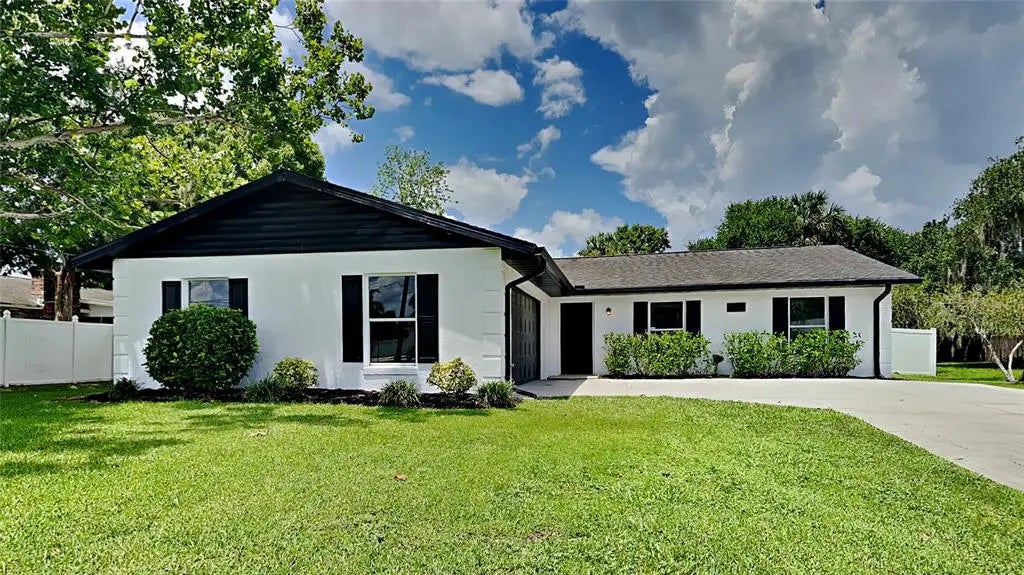NEW SEPTIC!!! This charming 3-bedroom, 2-bath single-story home features a fresh, modern look with newly applied interior and exterior paint. Inside, you'll find beautiful new luxury vinyl plank flooring throughout the living areas, while the bedrooms are outfitted with soft, plush carpeting. The open-concept layout seamlessly connects the kitchen, dining, and family living areas, creating a spacious environment perfect for entertaining. A cozy fireplace adds warmth and character to the living space, and large windows invite plenty of natural light. With vaulted ceilings and ceiling fans throughout, the home feels airy and comfortable year-round.