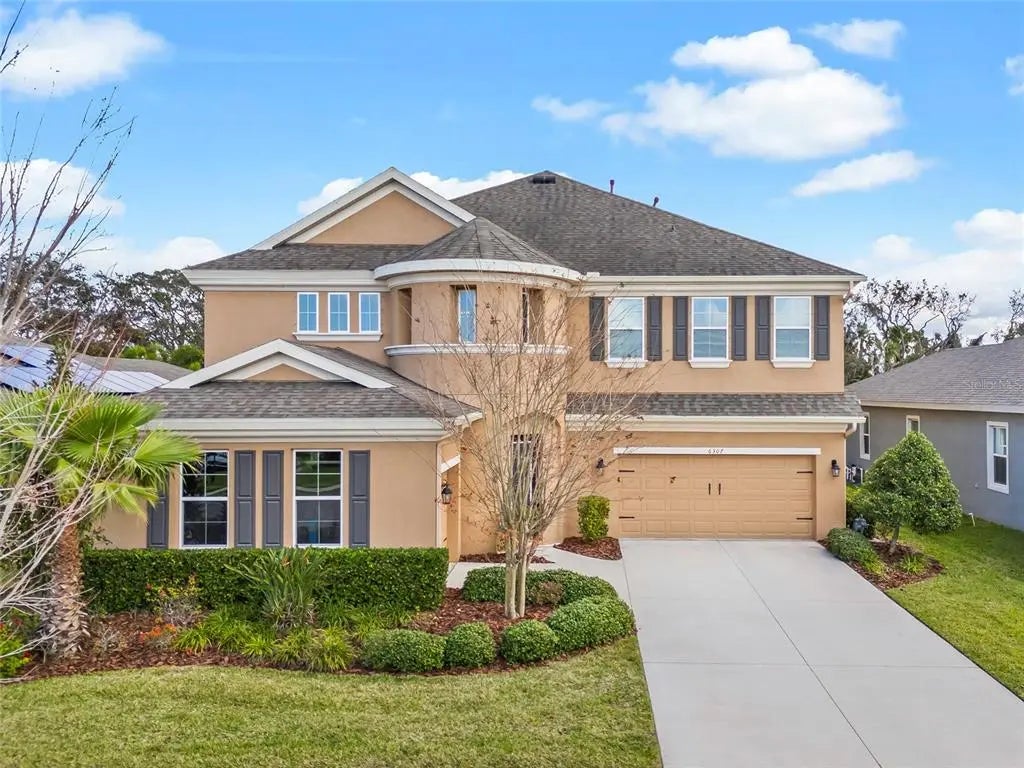 $5k offered to buyers to pay closing costs, buy down their interest rate or use for upgrades- You can choose!! New Price improvement! Welcome to this breathtaking 5-bedroom, 4.5-bath home with over 4,200 sqft of luxury living space, perfectly nestled on a serene conservation lot in the highly sought-after Waterset community. Located in FLOOD ZONE X (no flood insurance required). From the grand two-story foyer and elegant open staircase to the private office with French doors and formal dining room, this home exudes sophistication and style. The heart of the home is the gorgeous gourmet kitchen, boasting upgraded granite countertops, 42” upper cabinets with crown molding, a stunning tile backsplash, stainless steel appliances—including a gas cooktop, wall oven, refrigerator, oversized island with storage and seating, and a custom built-in desk perfect for home office workstation with additional cabinets for extra storage space. Adjacent is the expansive family room, featuring built-in surround sound, casual dining space, and sliding glass doors that open to a lanai and pre-plumbing (gas and water) for your dream outdoor kitchen—all with breathtaking conservation views and privacy.