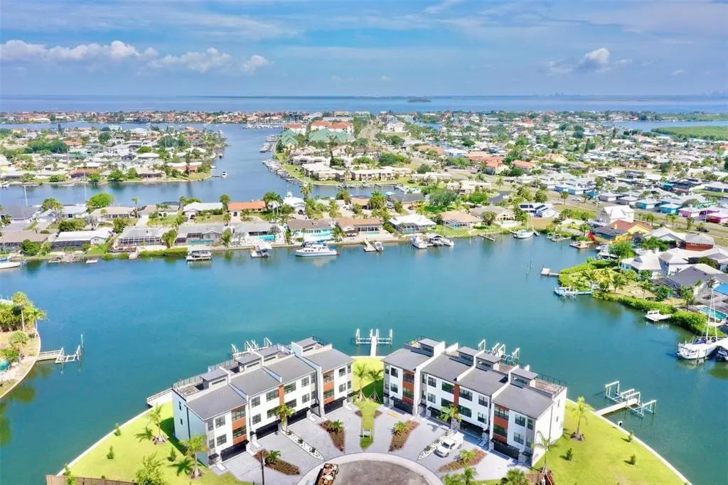 One or more photo(s) has been virtually staged. $40,000 FLEX CASH thru the end of October! This can be applied towards a private POOL, outdoor kitchen, custom upgrades inside or out! The choice is yours! These townhomes each include a Private Elevator, Rooftop Terrace, Dock with a 10,000lb Boat Lift. Direct and easy access to Tampa Bay! Concrete Block top to bottom. Impact windows and doors, plus designer-curated interior finishes. Designed with flexibility in mind, these townhomes have low rental restrictions. Details meticulously crafted for both function and luxury. The private 2 car garage comes equipped with an EVcharging station, extra storage space and a sleek exterior garage door. Just steps from your car you will be greeted by an expansive covered rear lanai that's pre-plumbed for an outdoor kitchen! An elevator inside your own home effortlessly transports you between floors, adding both grocery/luggage convenience, privacy and sophistication. The open-concept kitchen is a chef's delight, featuring LG stainless steel appliances, Caesarstone quartz countertops, and a stunning waterfall island with the built-in SHARP drawer microwave. Adjacent to the kitchen, a flex space area provides ample room for gatherings and entertainment. The main living area includes a separate 4th bedroom or den / office along with a guest powder room. Upstairs from the main living space, the primary suite is a true retreat, offering a walk-in closet with custom shelving and an opulent ensuite bathroom with floor-to-ceiling marble, a walk-in shower, and a stand alone soaking tub. LED-backlit mirrors adorn every bathroom. Custom walk-in closets. Two additional guest bedrooms also feature walk-in closets, plank tile flooring, and trim work as seen through the main living areas, tall solid core doors, expansive ceiling heights and large windows for plenty of natural light making the space feel elegant and inviting. Crowning this waterfront masterpiece is a private rooftop terrace! Panoramic views of Tampa Bay set the stage for unforgettable sunsets, summer storms, and fireworks. Whether enjoying a quiet evening under the stars or hosting a lively gathering, this rooftop oasis is the pinnacle of luxury living. Tropical landscaping plus lawn maintenance, irrigation and a fishing pier are included in the low monthly HOA. No CDD fees. NO bridge restrictions! Builder warranty included! Financing Incentive available through preferred lender. Come join us for a Boat Tour and walk the fully decorated model!