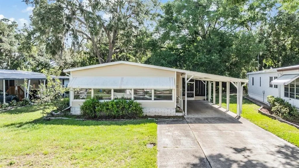One or more photo(s) has been virtually staged. Welcome to Your Peaceful Retreat in Shady Oaks Modular Estates! New updated flooring located on small creek and green space. Land included. Step into the easygoing lifestyle you've been dreaming of in the highly sought-after Shady Oaks Mobile Modular Estates—a serene 55+ community where charm, comfort, and connection come together. This delightful 2-bedroom, 2-bath gem offers more than just a place to live—it’s a place to love. From the moment you arrive, you’ll be greeted by a welcoming carport, a cozy Florida room, and a charming side patio—the perfect spot to sip morning coffee, enjoy sunset chats, or host weekend get-togethers. Inside, you’ll find spacious, sunlit rooms filled with warmth and possibility. Large windows invite natural light to dance across the open living spaces, while the thoughtful layout makes everyday living effortless. Need storage? You’re covered—with both attached storage and a dedicated shed/workshop, there’s plenty of room for your tools, hobbies, and treasures with two large work sheds. Being a part of the Shady Oaks community grants you access to a sparkling community pool, shuffleboard courts, peaceful sidewalks, and a central mailbox area that simplifies daily errands. Perfectly located just off US 301, you’re never far from your favorite shopping spots, local dining, and plenty of outdoor fun. Homes like this don’t stay on the market for long—come experience it for yourself! We invite you to schedule your private showing today and take the next step toward the lifestyle you deserve.