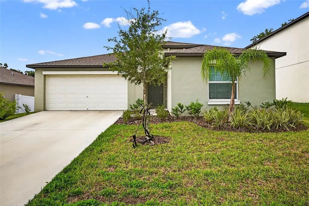 Exceptional living starts here in Abbott Square! This single story, 4 bed, 2 bath Lennar home is practically new and ready for you! Tall ceilings, tile flooring, carpet in the bedrooms, and a great location! Enter into your new home with a 3/1 split floorplan. Bedrooms 2, 3, & 4 are toward the front of the property and share bathroom 2. 1 or more bedrooms could easily be used as an office, flex space, the potential is endless! Separating the bedrooms is the hearth of the home with a huge living room open floor plan to the kitchen and dining area. Kitchen features stainless steel appliances, granite countertops, closet pantry, 3-4 person seating island and a dining area with views of the partially fenced back yard & no development behind it! The primary suite is located in the back of the property with a full ensuite bath with walk in shower, and a walk in closet with a ton of space! The two car garage and additional 2 driveway spaces leave plenty of off-street parking. Be a short distance from the community clubhouse and pool. Abbott Square is conveniently located near Florida Medical Clinic, sports centers, retail, Publix, and easy access to all points of interest. This single family home is ready for you & move-in ready. Stop by and dont forget to visit the amenities!