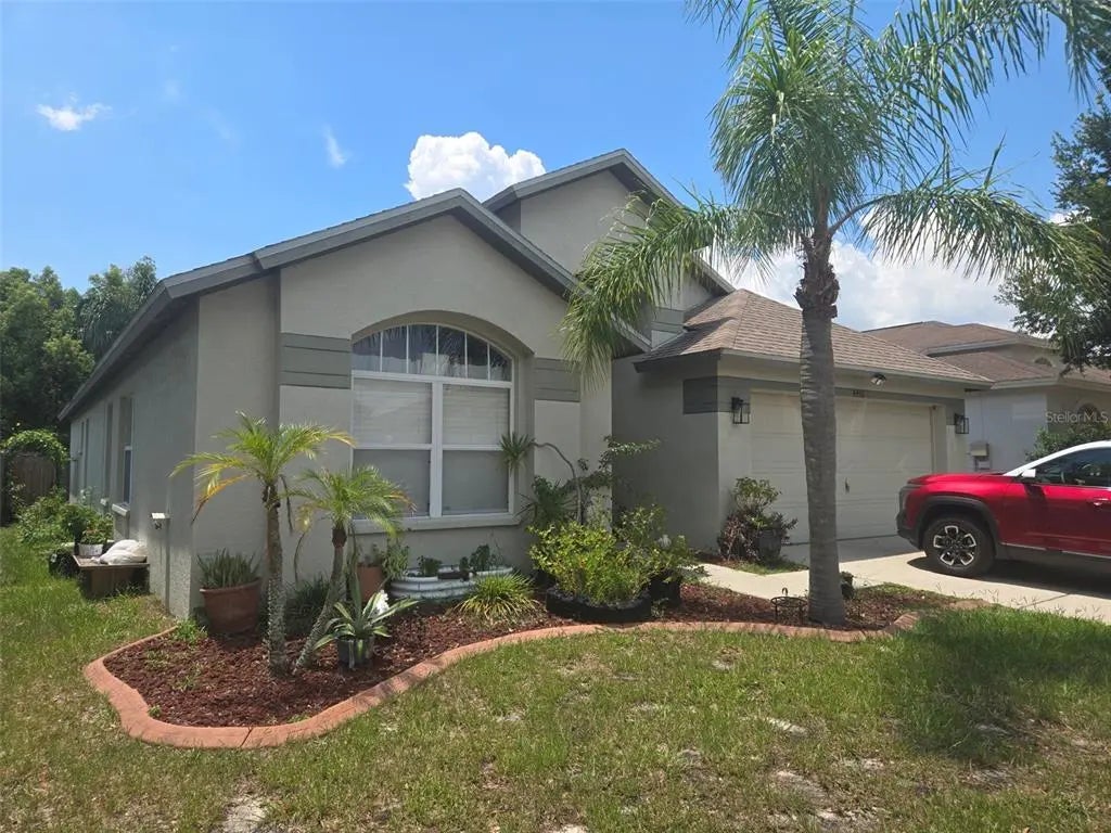 Under contract-accepting backup offers. HUGE PRICE ADJUSTMENT!! This Nice size family home featuring 4 bedrooms, 2 bathrooms and a SCREENED IN POOL. This home is perfect for the growing family. With over 2,000 sq ft. of living area. Ceramic tiled hallway which carries into the formal living/dining area. The dining room is a nice size and can accommodate a big gathering table. The living area is also a good size with built in shelves either side leading from the hallway. The hallway has two built in arches on the wall with decorative mirrors. The second bedroom with double door entry is off of the hallway opposite the kitchen and features a double closet. Kitchen has the same ceramic tile as the living and dining room. It features stainless steel appliances, double sink, plenty of countertop workspace with seating at the bar. Abundance of cabinets, pantry and a nice eat in area with a window seat. A double window in the kitchen giving it plenty of natural light. There is also decorative shelving around the kitchen for all your little collectables. NEW DISHWASHER and the WATER HEATER is only 3 years old. The kitchen overlooks the big family room which has premium laminate flooring and a slider to lead you outside to the pool area. The Primary bedroom is separate from the other bedrooms and is a good size featuring room for a king size bed and furniture. It also has a sliding door leading out to the pool. From the Primary bedroom you will find a pocket door leading into the primary bathroom which has double sinks, garden tub and separate shower. All three of the additional bedrooms have carpet, ceiling fans and double closets. The second bathroom features a tub/shower combination. The pool area has a covered lanai with plenty of space for furniture. There is a child safety fence around the pool. The POOL PUMP is BRAND NEW, and the POOL has just been ACID WASHED. Did I mention that the WASHER AND DRYER are staying with the home along with the outside garden beds. The FENCE on both sides of the home is NEW.