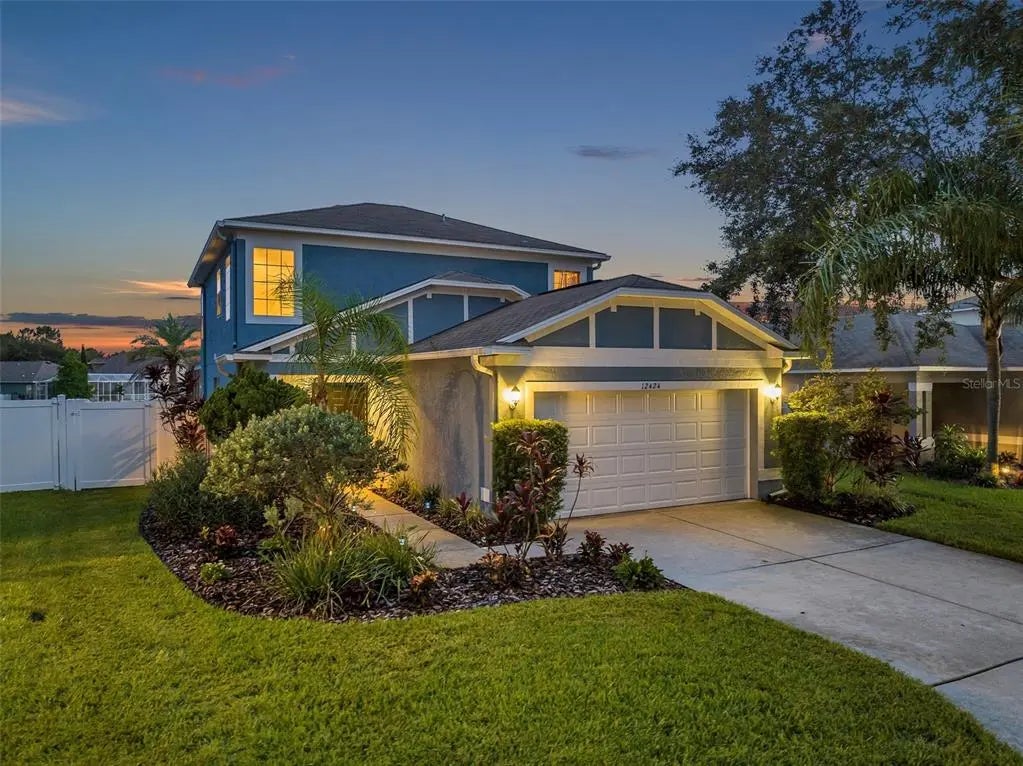 WATERVIEW. SALTEWATER POOL. FULLY FENCED. Gated Community known as The Verandahs, a Tampa Bedroom-Community, approximately 37 minutes to Tampa International Airport and minutes to the Suncoast Parkway. 3 bedrooms (upstairs), 2 full bathrooms (upstairs), guest half-bathroom (downstairs). FULLY FENCED - gates on both sides of the yard (2022), HUGE extended brick-paved lanai, high-height pool enclosure. Pool features; 16X28 SALTWATER, PebbleTec finish, Pool Pump (2023) seating shelf area by the deep end, wide step entry, and pool light. Exterior light over the grill, (2) screened, entry doors plus a covered lanai area with ceiling fan. Eating area in the kitchen with all appliances included (MICROWAVE 2024). INSIDE laundry room off of the kitchen leading to the 2-car garage. WASHER & DRYER INCLUDED. Ceiling fans throughout with remotes. Security system in place (2 alarm keypads), Ring camera out back, August cell phone lock, large storage area under the staircase with light. ROOF (9-2023), Sod replacement & irrigation repairs (9-2023), GUTTERS & DOWNSPOUTS (2021), EXTERIOR home painting (2-2022), WHOLE HOME water softener (5-2025), Reverse Osmosis at sink (2024), WATER HEATER (2022) and the HVAC (2019) is serviced regularly and features Blue Tube UV Light. This house feels like "HOME" with saltwater pool, water view with fenced yard, lush grass, adorable curb appeal, lots of light and perfect layout. The community features a gym (24-hour access), club house, pool, playground and doggie waste stations throughout. Golf Carts Welcomed. Survey on file. Original Owner - Impeccably Maintained - Pride of Ownership. Non-flood required area; NO storm damage. SUNCOAST BIKE TRAIL & STARKEY WILDNERNESS PARK- minutes away.