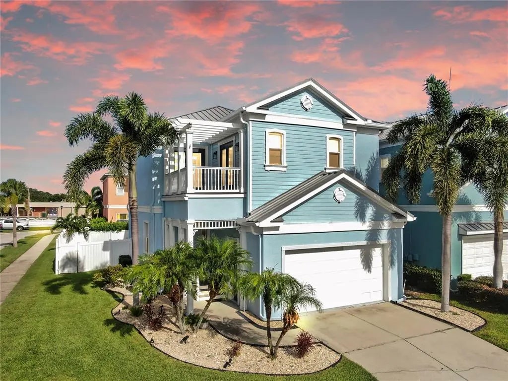 Under contract-accepting backup offers. Discover this beautiful 2-story 3 bedroom, 3.5 bathroom 2,026 SQFT home featuring an office/playroom in a charming Key West style neighborhood. This home has oak wood flooring throughout with a modern appeal. The main floor is designed for entertaining with an open concept kitchen and living room. Upstairs you will find the 3 spacious bedrooms with oak wood and carpet floors throughout. Features included are a 2 car garage, oak wood floors throughout the living and dining room combo and office, coffered ceiling in the dining area, 5" crown molding, 10' ceilings, 8' doors, plus double sliders open to the large deck and backyard making it open and inviting. The primary bedroom has its own private balcony and the other two bedrooms have a joining balcony. The master bathroom has a large walk in shower, tub and a double sink vanity. Located less than 1/2 mile walk/drive to Apollo Beach elementary, and 2 mile drive to Waterset Charter School K-8. Just a few minutes from the Apollo Beach Nature preserve and the Manatee viewing center! There is NO CDD and the HOA includes the lawn maintenance! Don't miss out, make this property yours today.