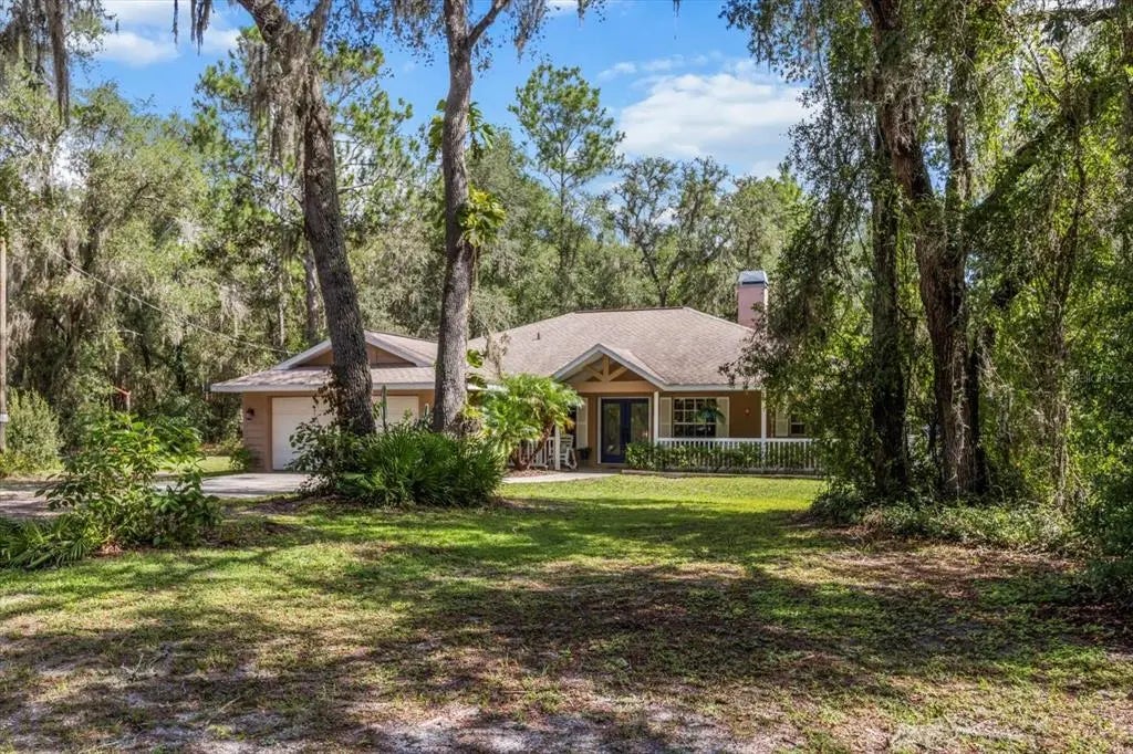 This stunning property provides a 3 bedroom, 2 bathroom home with 2019 roof in Lake Panasoffkee, FL offers a wooded retreat on 10 acres of land. Granite counters in the open kitchen, extra large primary suite, and Florida room with pool table make this a MUST SEE! A beautiful rock fireplace anchors the great room, & can be used with wood or the included electric insert. The property is fenced, surrounded by trees and features a pond and barn. The barn features 2 stalls, a tack room, and electricity. So if you don't have horses, use it for a work shop and mower storage. A massive RV hanger fits 2 RVs or tractors. A heated + screened swim spa adds to the outdoor living luxury. The tiled florida room includes a pool table, fridge, and bar! No flood zone. AC 2020. There is auto hookup for a generator in the garage. This Lake Panasoffkee home combines comfortable living with ample outdoor space and equestrian facilities, for those seeking seeking a rural Florida lifestyle.