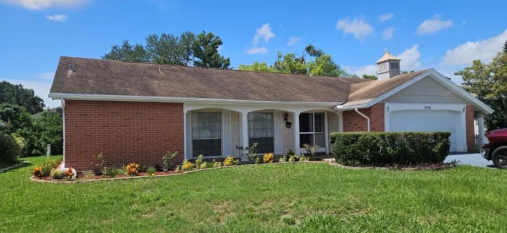 Move in ready, beautifully landscaped waterfront home. Remodeled kitchen with new stainless steel appliances granite counters, tons of storage and cabinets, pass thru window to large screened in porch overlooking the water and wildlife. peaceful and tranquil. Large primary bedroom offers glass sliders to the porch, new vanities and tasteful bath upgrades, walk in closet. Split floor plan with inside laundry room, 2 bedrooms and large updated bathroom. Very large living /dining room combo. Freshly painted with some new flooring, new water heater, 2 car garage door and opener, irrigation and newer pump.
