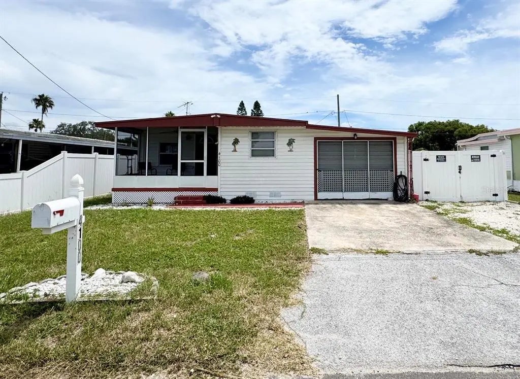 **NEW PRICE**On it's own land and move-in ready! Come live the Florida lifestyle in this spacious and versatile 3-bedroom home that offers so much more than meets the eye! From the moment you step onto the charming screened-in front porch, you'll feel the welcoming, laid-back vibe this property exudes. Inside, a generously sized, freshly painted living room and a large dining area provide the perfect space for relaxing or entertaining. The kitchen has a tiled backsplash and plenty of cabinetry. The primary bedroom is extra large with direct access to the back porch. Bedroom 2 and 3 have built in dressers and the third bedroom also has it's own private 1/2 bath! Step outside and discover your own private retreat! Cool off in the above-ground pool, lounge on the surrounding deck, or rinse off in the convenient outdoor-access shower and toilet located in the separate laundry area—perfect for pool days or muddy playtime. The attached one-car garage with workshop (cooled by window unit), and additional side parking offer endless potential: boat storage, hobby space, extra vehicles, or even a dog run. And don’t miss the adorable backyard shed with its own front porch, electric, and window—ideal as a playhouse, she-shed, home office, or creative studio. A/C (2018) and classy white vinyl fencing for privacy and peace of mind, this home adapts to your lifestyle—whether that means entertaining, working from home, gardening, crafting, or simply soaking up the sun. With multiple flexible spaces inside and out, the possibilities are endless! **SELLER WILL PREPAY HOA DUES FOR ONE YEAR** with full price offer! Don't wait...come see it today!