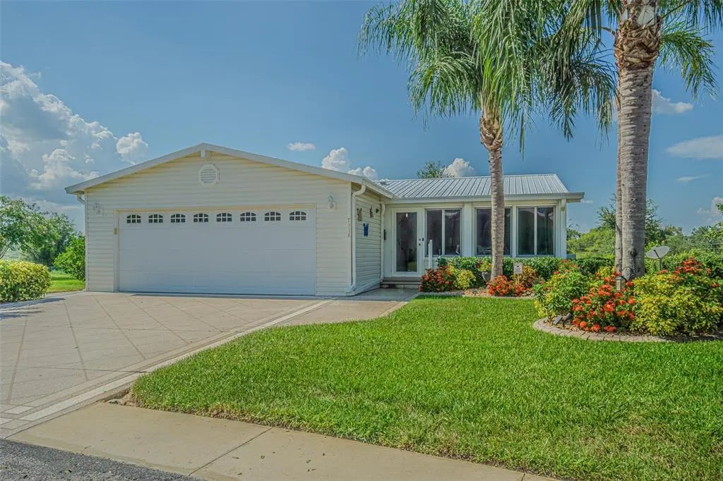Welcome to this beautifully maintained custom home nestled in the highly sought after 55+ GATED community of Grand Horizons, where you OWN Your LAND! Located on a quiet cul-de-sac, this residence sits on a PREMIUM oversized pie-shaped lot, offering serene views of rolling hills and lush greenspace. Enjoy Florida living year-round from the comfort of your enclosed front porch, complete with air conditioning and slider windows — the perfect space for morning coffee or afternoon relaxation. Great Curb appeal greets you with mature tropical landscaping! Once inside the storm door, find elegant wood flooring flowing through the foyer, hallway, kitchen and laundry room, while upgraded carpeting graces the other areas for both style and durability. The light and bright open-concept floorplan connects the kitchen, living, and dining areas, creating an inviting space, ideal for entertaining. The kitchen features a breakfast bar, stainless and black appliances, stone backsplash plus ample cabinetry. Sliding doors from the Great room OPEN to a generously sized Florida Sunroom at the rear of the home, enclosed with glass windows and offering a separate exit to the private side yard... a tranquil retreat to enjoy nature in peace. This thoughtfully designed home offers two bedrooms plus a versatile den/office with French doors just off the foyer — easily convertible into a third bedroom if needed. The owner’s retreat is located at the rear of the home for privacy and includes a spacious ensuite bathroom. The secondary bedroom and full bath are situated at the front of the home, perfect for guests. Additional features include a large interior laundry room with storage closet, generous closet space throughout, plus a two-car garage. Live the Life in this active 55+ community! Residents of Grand Horizons enjoy access to a resident-owned clubhouse featuring a billiards room, craft room, library, dining area, and a commercial-grade kitchen. Amenities also include a heated pool and a calendar full of social events, onsite dinners, shows, travel excursions, and planned activiities — all with low monthly HOA fees and no CDD fees. Located in East Pasco county in the HILLS of Zephyrhills, just minutes from medical facilities, restaurants, shopping, YMCA, theater, bowling and major highways for easy commute to Wesley Chapel malls and outlets, Tampa, Ocala, Orlando, Lakeland, Airports and the Beaches! Don’t miss your opportunity to own this special home in one of the area’s premier adult communities. CALL TODAY!