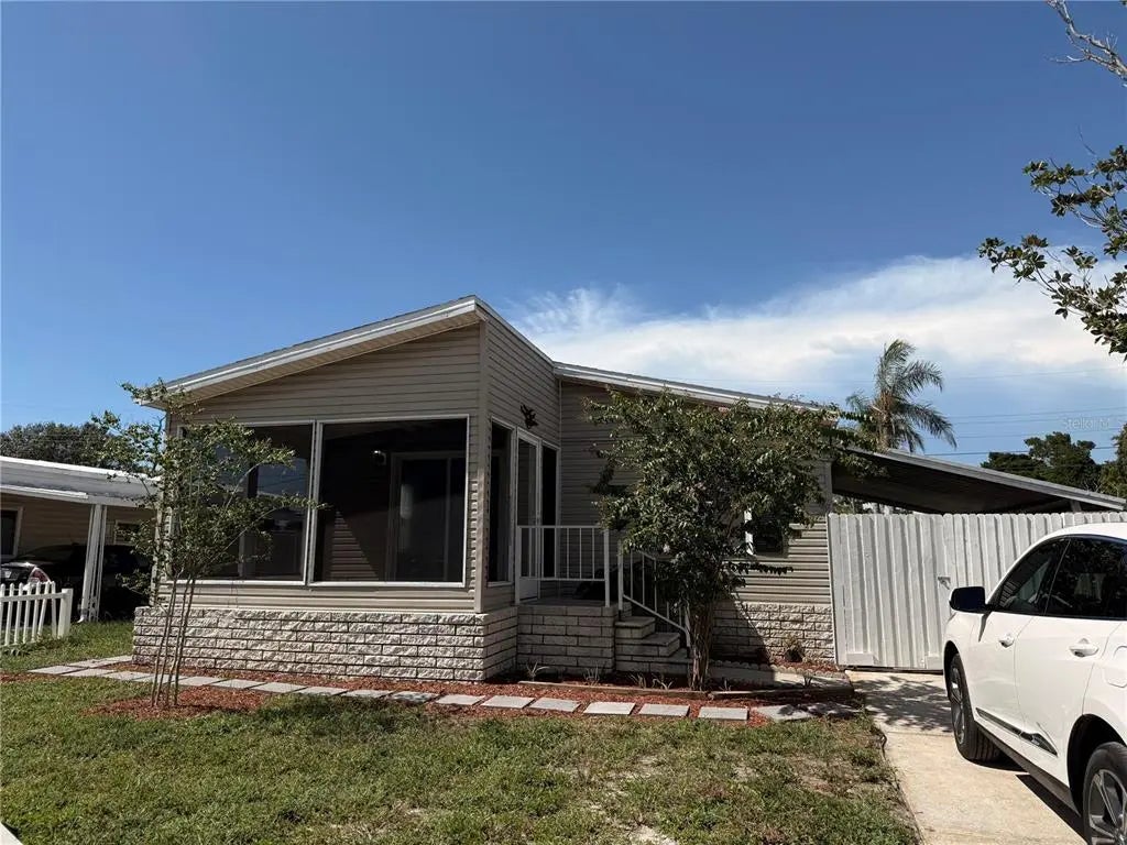 Beautifully updated 2-bedroom, 2-bathroom home with new vinyl plank flooring, Brand New AC System with New ducting and thermostat, Newer double door refrigerator, washer, dryer, glass top stove, Over The Range microwave, dishwasher, NEW wood deck on the front porch, Fence, lights, fans, interior doors, windows, blinds. Completely updated bathrooms with new vanities, sinks and faucets, updated landscaping with large stone paved walkway and Mulch. It offers 1,014 square feet of comfortable living in the desirable Buena Vista community located in Holiday, FL. This land-owned property features modern upgrades throughout and is located outside of a flood zone, providing peace of mind and low maintenance living. With no age or lease restrictions, this home offers excellent flexibility for both homeowners and investors. The interior has been thoughtfully renovated, including an updated kitchen and contemporary fixtures. The layout is bright and open, creating a welcoming space ideal for relaxing or entertaining. Centrally located, this home is close to shopping, dining, beaches, and major roadways, making it a convenient and attractive option for those seeking both comfort and accessibility. Don't miss the opportunity to own a move-in ready home in one of Holiday’s most flexible and well-situated neighborhoods