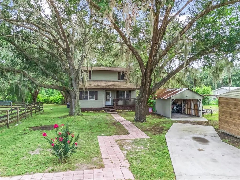 Escape to your very own private retreat! Tucked away on 5 peaceful, wooded acres, this adorable cabin-style home blends country charm with thoughtful updates. Inside, you’ll find new vinyl plank flooring, fresh paint, and a layout designed for comfort. The kitchen has newer refrigerator, lots of cabinets and opens up to the dining room. Home has newer ceiling fans and roof is only 5 years old! The spacious owner’s suite is on the main floor. Upstairs features two cozy bedrooms and a second full bath. Outside, this property is a nature-lover’s dream! Enjoy multiple sheds for storage or hobbies, a fenced orchard with fruit trees like limes, lemons, Japanese plums, pears, oranges, and cherries — plus a fire pit perfect for starry nights. And yes, there’s even a whimsical outhouse with a flushing toilet for added convenience. This will be your new favorite hangout spot. The property gives a great blend of rural living with also providing convenient access to Florida's Turnpike. Whether you’re looking for a weekend getaway or a forever home with privacy and character, this one-of-a-kind property delivers. Schedule your showing and experience the serenity for yourself!