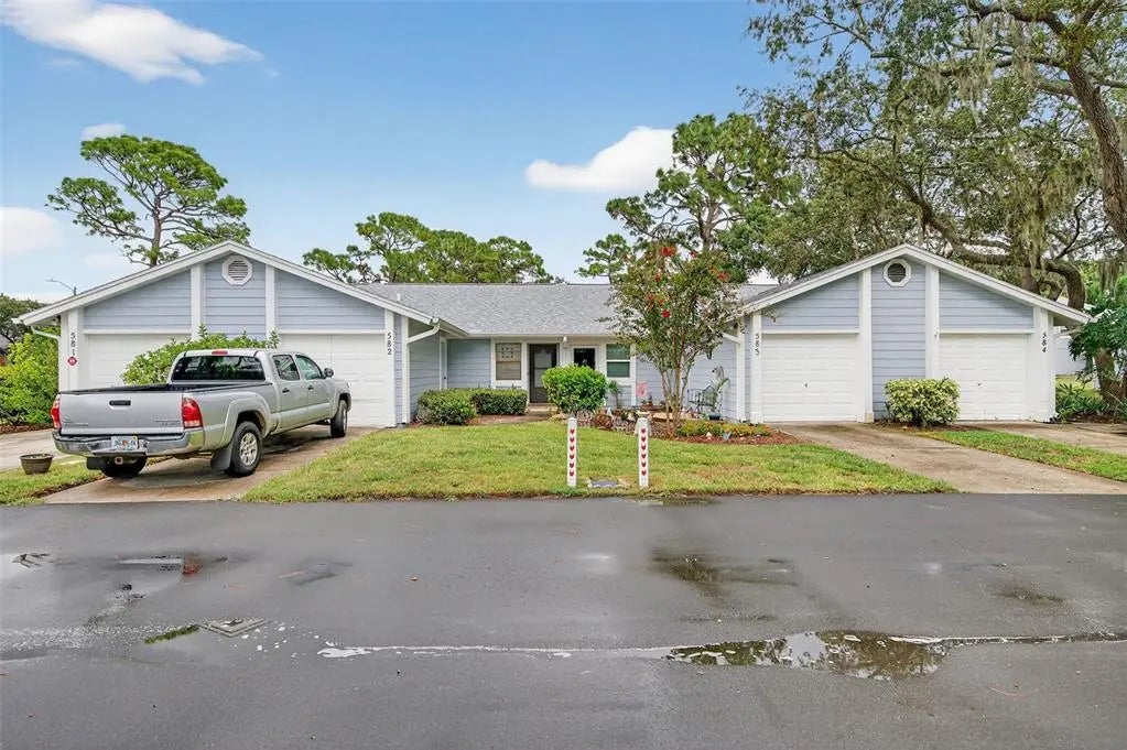 Welcome to this spacious 2-bedroom, 2-bath villa in the highly sought-after Woods at Anderson Park, a beautifully landscaped community that feels tucked away yet close to everything. From the moment you enter the neighborhood, the winding, tree-lined roads create a serene, country-like setting that instantly feels like home. Step inside through your private front entry or attached garage and you’ll be greeted by a bright, open floor plan with soaring ceilings that make the home feel even larger. The expansive kitchen flows seamlessly into the combined living and dining area, perfect for both relaxing and entertaining. French doors open to a screened-in porch where you can enjoy the peaceful setting, or step out further into your shaded backyard retreat. The split-bedroom layout ensures privacy, with the primary suite located at the back of the home featuring a walk-in closet with built-in shelving and a private bath. The Woods at Anderson Park offers fantastic amenities, including a clubhouse with an indoor pool, fitness center, game room, and event space. Monthly maintenance fees cover Internet, cable, water, trash, sewer, and grounds maintenance, making for easy living. Ideally located, Woodhill Drive provides direct access to US Hwy 19 for shopping and dining, plus a private owners-only back gate to Belcher Rd and Klosterman Rd, connecting you to Pinellas Ave for quick trips to Honeymoon Island or the famous Sponge Docks of Tarpon Springs.