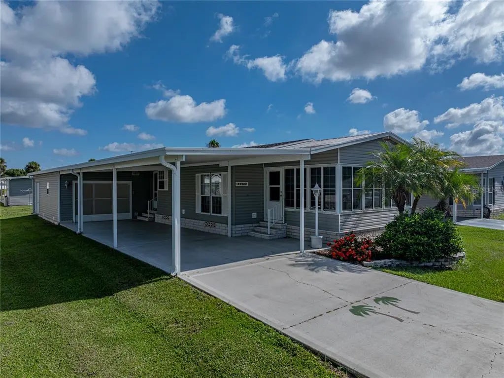 PRICE IMPROVEMENT! Florida Living at its finest! Enjoy living in one of the Tampa Bay Area's most sought after and active 55+ communities! With over 124 acres of common grounds, Betmar boasts 27 holes of golf, 2 swimming pools and spas, 24 covered shuffleboard courts, outdoor tennis, pickleball and bocce ball courts and 3 very active clubhouses where you may enjoy social events such as monthly dinners and breakfasts, music, games, theater and holiday events. This lucky homeowner need never be bored with over 25 active clubs and numerous monthly calendar events. For the adventurous spirit, Betmar offers travel from local day trips to international group travel options. At Betmar, YOU get to decide how to live YOUR best life. You may prefer to simply relax and enjoy the peaceful surroundings of the many lush gardens, fountains, and ponds, or a relaxing game of miniature golf next to the gazebo and covered bridge or a stroll through Memorial Lane may be more your style. In that regard, you will be pleased to know membership for the golf and aquatic clubs is completely optional. In addition, there are NO lot fees here. When you purchase this home in Betmar, you own your land. This spacious, open concept, one-owner home is located in the coveted “pet area” of the community and the neighborhood dog park is a shaded paradise for the four-legged residents. This home shows like a model and boasts many construction upgrades including, double pane windows with marble sills, sheetrock interior walls with rounded corners, brushed nickel lever door handles, french doors leading to a cozy flex space/den and 2-inch blinds and custom window coverings throughout. New LVP waterproof flooring was installed in 2021. Kitchen cabinets were updated with pull-out shelving, and a contemporary LG 3-door craft-ice refrigerator was purchased in 2022 along with the Samsung washer and dryer matching set. The full-length sunroom at the front of the home, along with 4 solar tubes allow for a light and airy interior design, which extends throughout the kitchen, laundry, and bath. Outside, you will find an oversized shady carport leading to the 2-car tandem garage with electrical wiring and a full-length retractable garage door screen, along with a separate entrance for golf cart, perfect for a workshop, man cave or outdoor craft area.