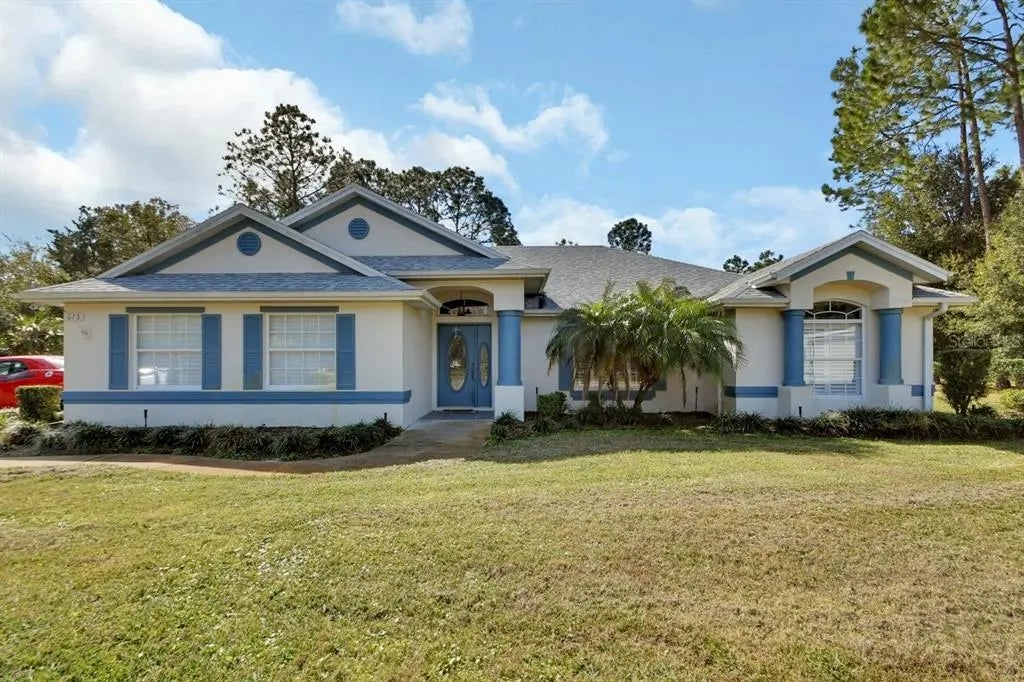 Nestled in the premier GATED COMMUNITY of Lakeshore Trails in DeLand, this custom-built POOL home seamlessly blends elegance with modern comfort. Designed for versatile living, it is perfect for multi-generational families, offering two spacious living areas, a formal dining room, and a cozy breakfast nook overlooking the serene pool and surrounding wooded landscape. The inviting family room features a gas fireplace, creating a warm ambiance during cooler months. This bright and airy residence boasts 10-foot knockdown volume ceilings, plantation shutters, and tile flooring throughout the main living areas. At the heart of the home, the kitchen provides ample counter space, hardwood cabinetry, and an ideal layout for both cooking and entertaining. A set of French doors from the formal dining and a set of sliding glass door from the family room leading to the enclosed pool area, enhancing the homes seamless indoor-outdoor flow. The primary suite is a private retreat with tray ceilings, a spa-like bath featuring dual sinks and a spacious shower, plus direct access to the pool. Additional highlights include recessed lighting, a central vacuum system, a closet pantry, and an oversized side-entry garage. Step outside to your personal oasis, a secluded, screened-in, heated gunite pool set on a beautifully landscaped half-acre lot at the end of a quiet, private street. Residents also enjoy exclusive access to Lake Mamie, perfect for weekend gatherings with family and friends. The home solar system ensures energy efficiency. With underground utilities, streetlights, and fire hydrants, this peaceful retreat offers both security and tranquility, truly a paradise to call home.