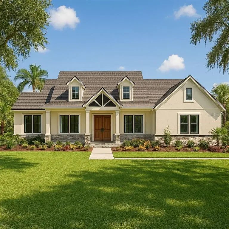 Pre-Construction. To be built. Stunning New Construction on 2.5 Acres – 4 Bed, 3 Bath Dream Home in Glenwood Area of Deland. This new construction home is currently under construction and is scheduled to be completed in December 2025. Nestled on 2.5 acres of lush land, this brand-new custom-built residence combines timeless elegance with modern comfort. Featuring 4 spacious bedrooms and 3 bathrooms, this thoughtfully designed home offers the perfect blend of style, space, and serenity. Builder is perfectly happy to work with buyers on final details and cosmetic finishes as they wish. Step inside to find an inviting open-concept layout with high ceilings, abundant natural light, and premium finishes throughout. The gourmet kitchen flows seamlessly into the living and dining areas—perfect for entertaining or enjoying cozy family nights. The owner's suite is a private retreat with a spa-like ensuite bathroom and generous walk-in closet. The home’s striking exterior features stone and post accents - rich double front doors, and architectural touches that echo Southern charm. The expansive lawn is framed by native Florida landscaping and mature trees, offering both beauty and privacy. This road is private and very quiet. Only twelve other homes on the road. Whether you're relaxing on the porch or exploring your 2.5-acre estate, this property offers space to breathe and room to grow—all just a short drive from local conveniences. Don't miss this rare opportunity to own a piece of paradise—schedule your private tour today! Please note: Images are not actual photos of the home. These are renderings to give an idea of what the home can look like upon completion. Additional SQ FT Information: First Floor Living Area 2446 SQ FT Second Floor Living Area 350 SQ FT Garage Area 662 SQ FT Covered Porch Rear 379 SQ FT Covered Porch Front 335 SQ FT Total Area: 4172 SQ FT