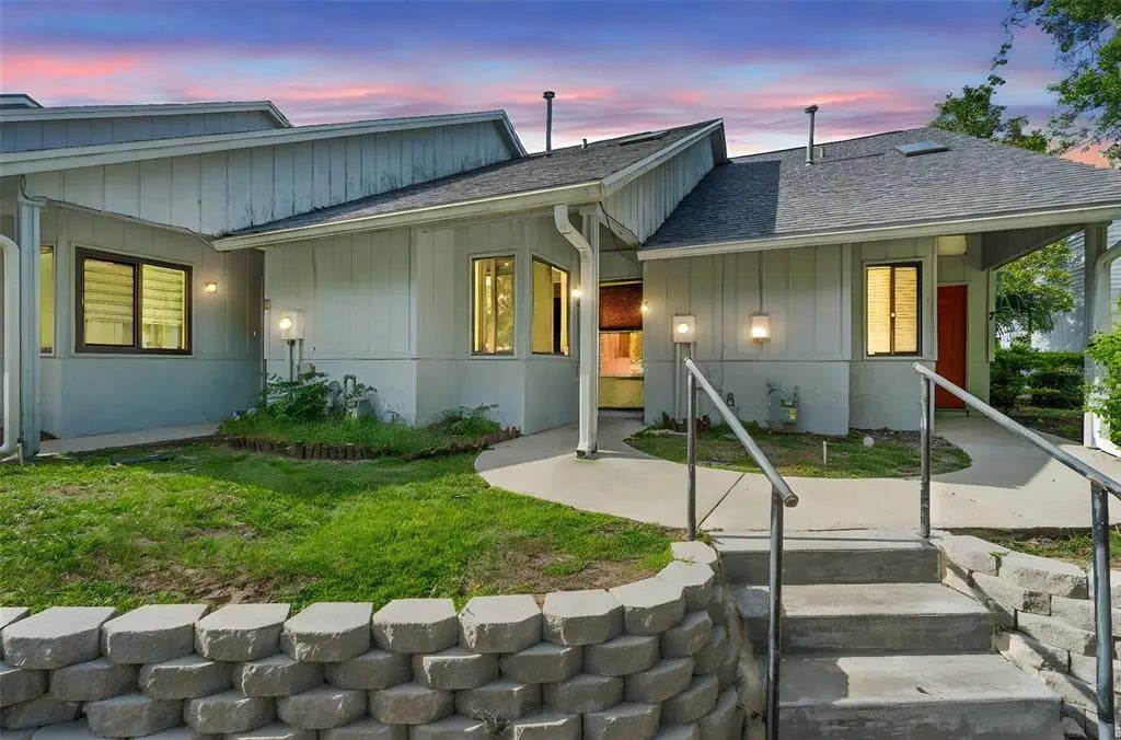 Under contract-accepting backup offers. One or more photo(s) has been virtually staged. DELAND: Welcome home to this 2 bedroom 1.5 bathroom townhome in the Lofts of Deland Community. The Townhome features the Primary bedroom on the ground floor along with the living room and kitchen. The living room boasts a skylight for natural light to flood the home and a ceiling fan to keep you cool. Sliding doors lead to the small fenced patio. The perfect spot to relax after a long day. The primary has a ceiling fan and great views outside. There is a En Suite bathroom with laundry closet and shower. Washer and Dryer stay! A beautiful winding staircase leads upstairs to the large loft with extra storage space. Low HOA fee. The location to close to everything DeLand has to offer as well as local beaches. Make your appointment today to see all this home has to offer you! **The info in MLS is thought to be correct but not guaranteed**
