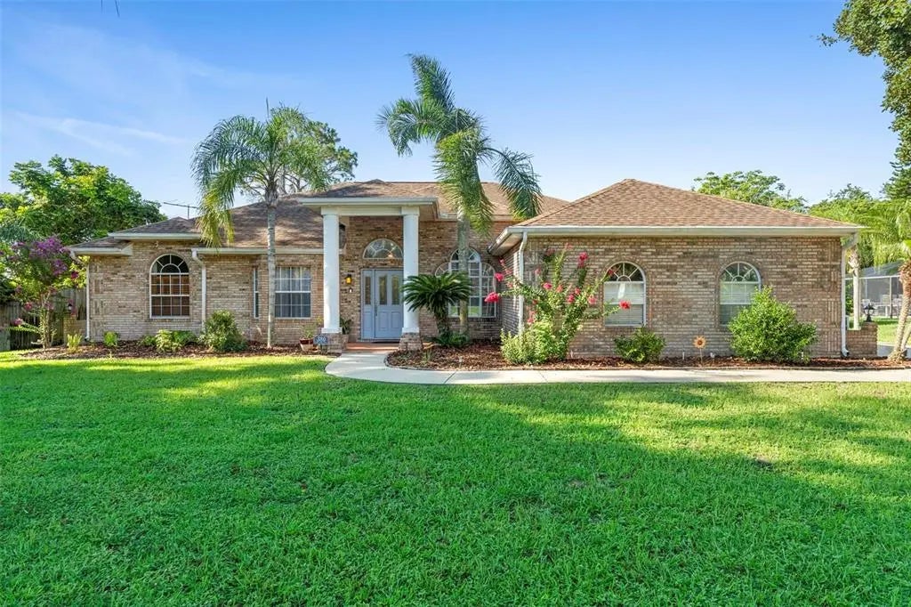 Under contract-accepting backup offers. Wow Gorgeous Pool Home On The Golf Course! Located in Glen Abbey in DeBary BUT No HOA! Quality Built Brick Home on almost a half acre lot. Impressive entrance with columns on the front porch going into large foyer. Formal Living and Dinning rooms huge Family room with lots decorative windows and 2 sets of French doors all opening up to beautiful Pool and Golf Course View! Large kitchen with lots of cabinets with granite counter tops with eat in area on back. Covered truss porch 29 x 11 all screened in with the screened in pool 29.9 x 24. Primary Bedroom has decorative sunburst window with tray ceilings walk in closet plus separate closet and linen closet off bath are 2 separate vanities , large tub, walk in shower with Pool entrance,, Bonus Guest bath also has door going to the pool! Next door is a conservation Area no neighbors on left side more privacy. Inside laundry room with tub and built in ironing board. Oversized 2 Car Garage 23 x 24 with side entrance and long drive way! Lots of upgraded lighting and ceiling fans through with shelving , tray ceilings! HVAC 6/2023 , up dating flooring in common areas 2022, Appliances 2021, Screen Enclosure 2022 , Roof replaced 2017.