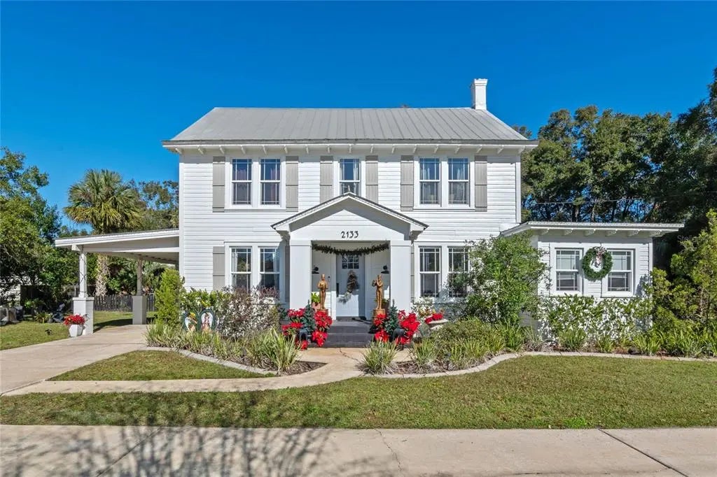 Traditional Farmhouse meets Modern Transitional! This 3-bedroom 2.5-bathroom home boasting roughly 2,600 sqft of living space is truly a one of a kind. Situated on an oversized lot nearly 3/4 an acre, this home sits off the beaten path while still maintaining proximity to all of life’s conveniences. With a historic background, this home was brought back to life in 2020. Entering through a circle drive you will find covered parking and plenty of curb appeal. When the front door opens, you are greeted with a perfect blend of original touches with modern updates. A complete updating of the kitchen, bathrooms, and fixtures are just a few highlights that catch the eye. The kitchen is a "showstopper" featuring quartz countertops, matte slate GE appliances, custom fixtures, a honed granite island with waterfall edges and eat-in seating. Some of that original preservation you will notice includes the re-finished wood floors, custom moldings, and shiplap to name a few. In addition, this home is also highlighted by tall ceilings in the living spaces, a plethora of spacious rooms, and newer prairie style double pane windows. The interior layout of this home allows for a functional flow and allows buyers to utilize the spaces in a variety of ways that fits their needs best. The exterior of this home has a lot to offer as well. Step out the back door to a fenced back yard with a brick patio/porch, a new wood lounging deck, concrete walkways, speakers (home sound system), and ample privacy. Looking for more space? A two-story barn offers plenty of storage and a setup for an upstairs barn apartment with infrastructure already in place. Lastly, the location offers that sought after privacy while being conveniently located near groceries, restaurants, Downtown Deland and major transit routes such as US 92, SR 44, and I-4. Call today to schedule a private showing!