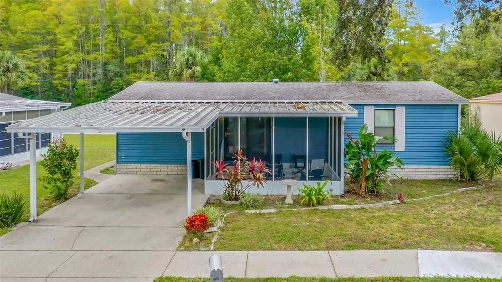 A POPULAR 55+ COMMUNITY WHICH HAS A POOL, CLUBHOUSE, & ACTIVITIES FOR ONLY $74 MONTH (HOA FEE). The price reflects the property needs a new roof, a new a/c heat unit, and outside electric panel needs replaced and updated to the new codes. The property also has a flex place which can be used as a family room/den/ office/ or a 3rd bedroom. Kitchen is open and bright with a breakfast bar, a food pantry and a laundry area off the kitchen. A large covered, screened in Lanai for enjoying the Florida weather, and a covered 14X19 carport. Great open layout. Pets are welcome, which it's hard to find a HOA that accepts 2 pets! Location is convenient to Shopping, restaurants, Sun West Beach, Hernando Beach, Weeki Wachee, Spring Hill, Hudson Beach, medical, and Tampa International airport around 50 minutes.
