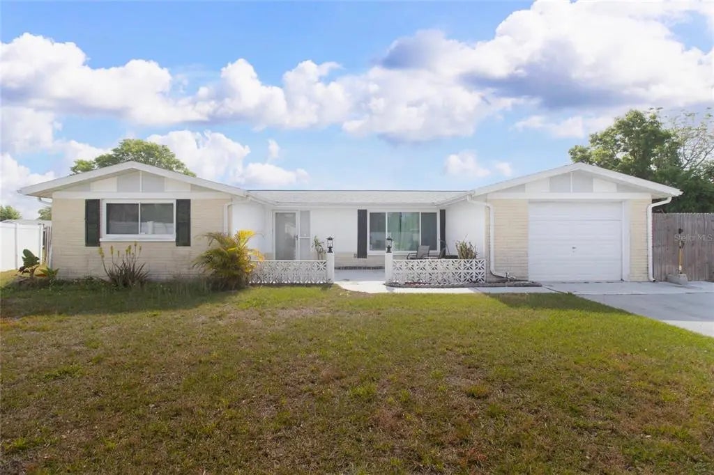 One or more photo(s) has been virtually staged. Short Sale. Charming 2 bedroom, 1.5 bath single-family home located in a quiet cul-de-sac in the Aloha Gardens community. This well-maintained property features an open-concept living and dining area filled with natural light from updated impact windows (2023). The kitchen includes an eat-in area with views of the spacious backyard, ideal for relaxing or entertaining. The one-car garage offers a half bath, washer and dryer hookups, and direct access to the backyard. Recent updates include impact windows (living, dining, primary bedroom, and bathroom), a new dishwasher, and a newer roof (2020). No flooding from recent storms. Located just minutes from Gulf beaches, shopping, dining, and major roadways.
