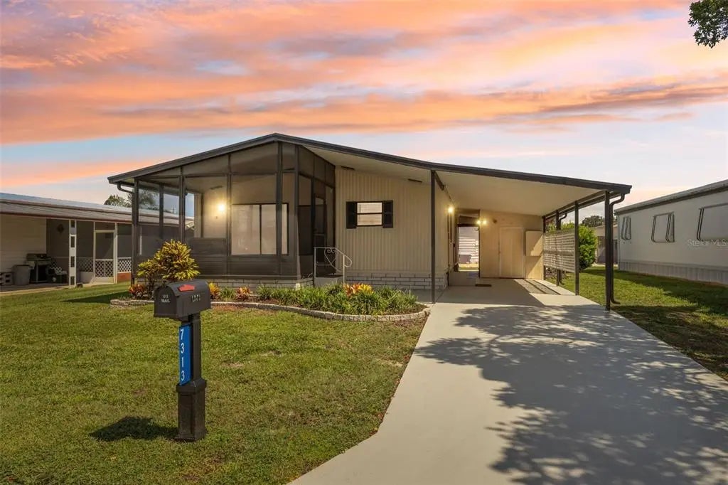 ***REDUCED! Priced to sell!!*** Nicely updated doublewide! This home is located in popular 55+ Ponderosa Park. NO lot rent! NO flood insurance! LOW HOA fees of $250.00 annually. Fully insurable and fully financeable! Everything has been done for you...all new flooring (luxury vinyl), carpet, blinds, interior painting, electrical outlets/plugs, fixtures, stainless steel appliances and more. Roof 2021! AC 2016! INSIDE utility, no stairs to climb on laundry day. Vaulted ceilings throughout! Both bedrooms are good sized with the primary bedroom having a walk-in closet and ensuite. The front screened porch allows for additional outdoor living and enjoying those nice Florida winters. Oversized shed! The rear yard is large enough for the family pets to play. Sprinkler system is in good working order, keeping the lawn looking lush with easy maintenance. This community comes with an active clubhouse and large private pool. CLEAR 4-POINT for insurance! Just minutes from some of Florida's most popular beaches and parks. Tampa International is a forty-minute drive. Schedule your appointment today, as this property will not last!!