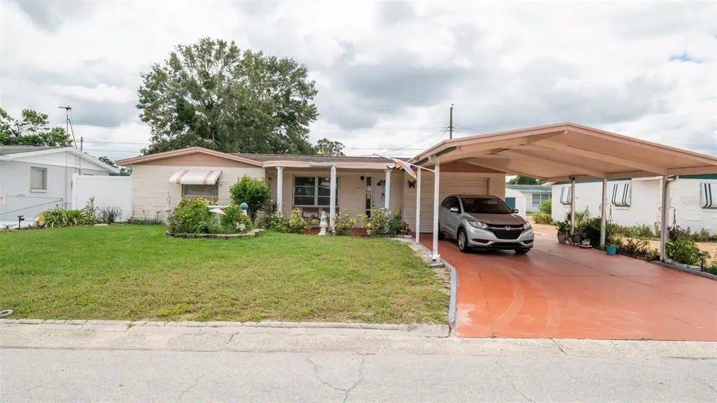 Under contract-accepting backup offers. Welcome to your dream home in the charming town of Holiday, FL! This beautiful single family home boasts 2 bedrooms, 1 bathroom, and 1200 square feet of living space. The attached 1 car garage and double carport provide ample parking for you and your guests. The split garage also includes a craft room with A/C, perfect for all your DIY projects. Step inside and be greeted by the updated kitchen featuring formica countertops, new cabinets, and tile flooring. The bathroom has also been recently updated, adding a touch of modern elegance to the home. Enjoy the Florida sunshine on the covered lanai, perfect for outdoor entertaining. Located in a peaceful neighborhood, this home is just a short drive away from local beaches, restaurants, and shopping. Don't miss out on the opportunity to make this your new home sweet home!