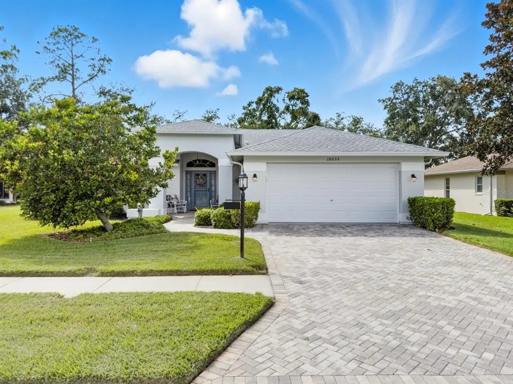 Welcome to this beautifully maintained residence in the highly desirable Heritage Pines 55+ Golf Community. Offered by its original owners, this 3-bedroom, 2-bath home comes optionally turn-key—fully furnished with all contents and even a golf cart included. The paver driveway sets the tone with an inviting curb appeal. Inside, cathedral ceilings enhanced by dual solar tube lighting create a bright and spacious atmosphere. The open living and dining area flows seamlessly into the kitchen, which features a center island with breakfast bar, closet pantry, and a cozy dinette area. The split-bedroom layout has the primary suite at the back of the home, offering dual walk-in closets and direct access to the shared Jack-and-Jill style bath with dual sinks, a walk-in shower with built-in bench, and connects to the front guest bedroom—also boasting a large walk-in closet. A third bedroom and second full bath are located on the opposite side of the home. Additional features include an indoor laundry room with cabinetry, storage closet, and washer and dryer included. Enjoy the extended enclosed lanai with paver flooring, ceiling fans, and tinted removable windows. Major updates include a newer roof (2020), AC (2015), water heater (2022), and completed, fully insurable settlement remediation (2012). Heritage Pines is a gated, amenity-rich, and pet-friendly community, featuring an 18-hole championship golf course, clubhouse with restaurant and bar, fitness center, heated pool and spa, and courts for tennis, pickleball, bocce, and more. HOA fees include cable, internet, lawn care, and irrigation, ensuring a worry-free lifestyle. Don’t miss the chance to call this home yours—explore the 3D virtual tour and schedule your private showing today!